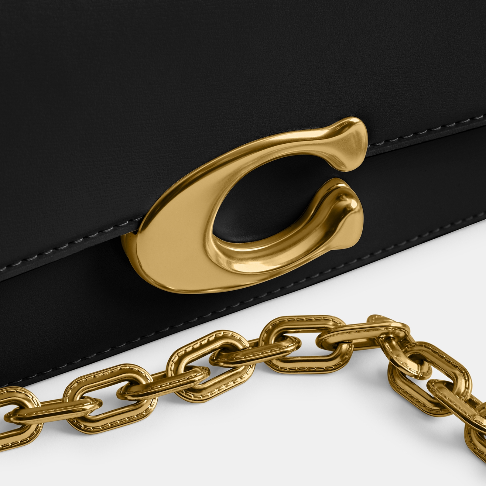 Stripping it back to the foundations, Coach crafts the Idol 23 bag from buttery black leather. A gold-tone C clasp, designer tab and chain handle grace the upper. Us editors think this silhouette pairs well with a figure-hugging black satin dress.