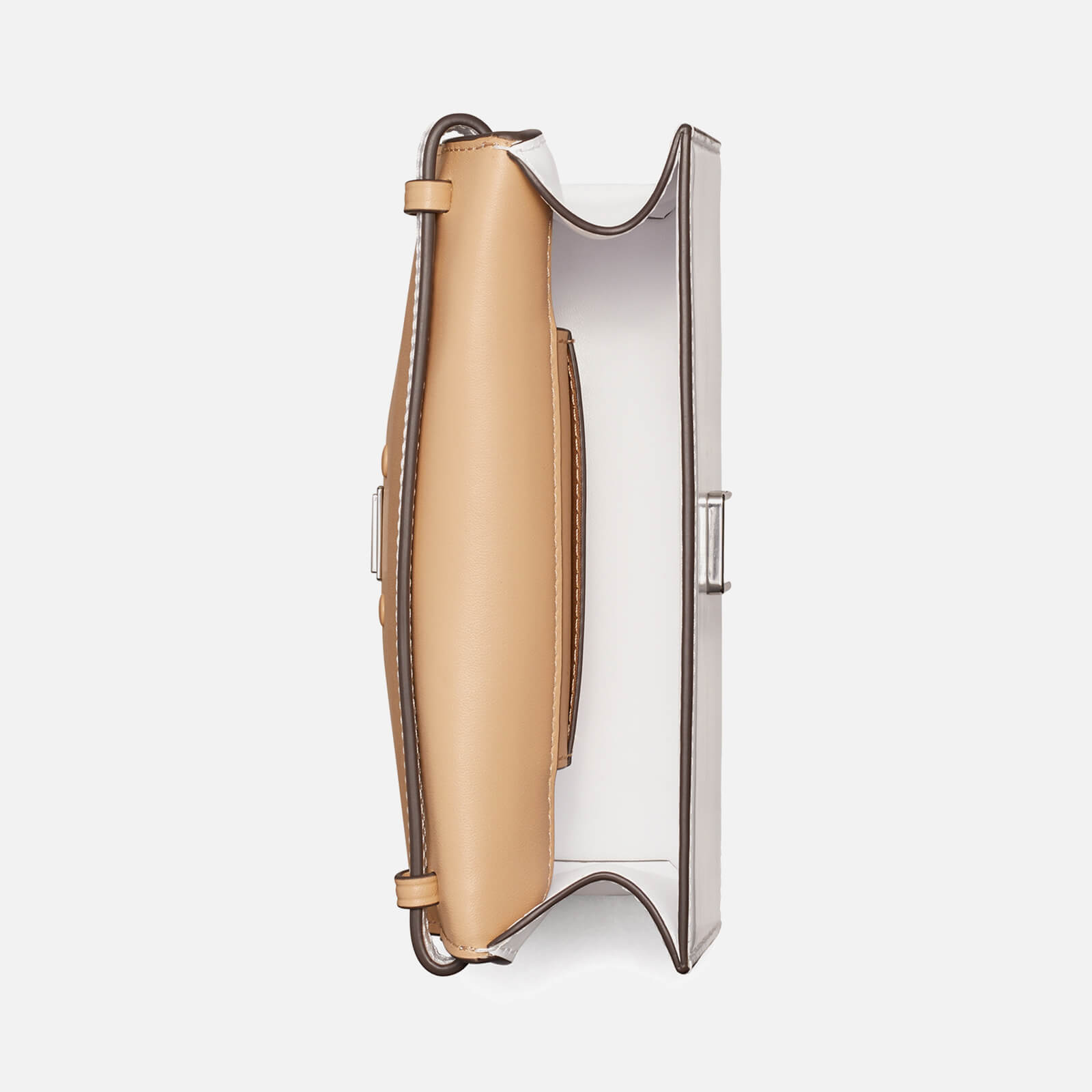 Tory Burch celebrates its founder through its logo. At first glance, the motif looks like a decorative cross, however, two T’s run through it, giving note to the creator’s first initial. The leather Bon Bon Spazzolato is finished with this iconic motif at its closure. A mini accessory to hold just the essentials, take it to elegant occasions.
