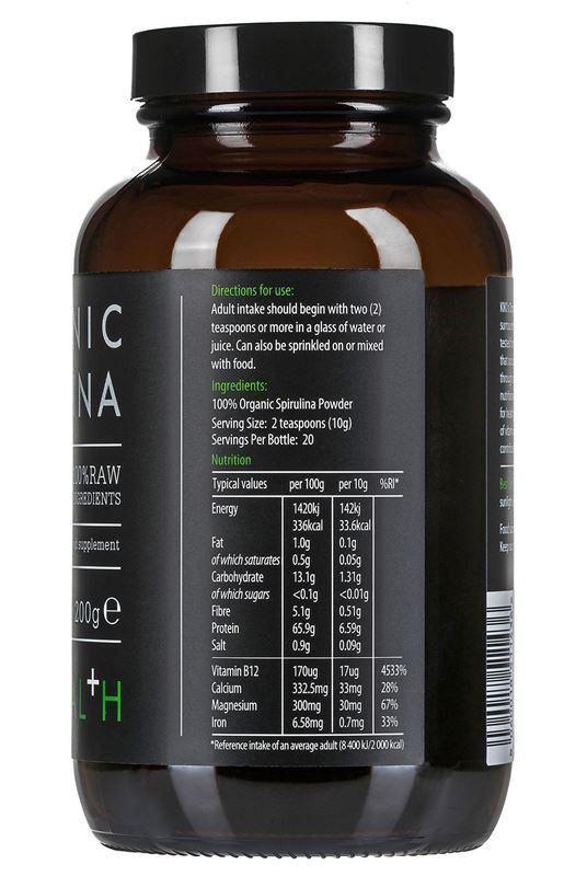 Organic Spirulina Powder 200g by Kiki Health. KIKI’s Spirulina is a strain grown organically on a pennisula surrounded by natural forests and away from urban areas. KIKI’s Organic Spirulina is routinely tested for the presence of mercury, lead and other contaminants to ensure that our spirulina is as pure as possible. The spirulina is carefully dried through an evaporation method using low temperatures to preserve all the nutritional content. KIKI’s Spirulina Powder is certified organic and does not contain any fillers or additives of any kind. Directions of use: Adult intake should begin with two (2) teaspoons or more in a glass of water or juice. Can also be sprinkled on or mixed with food. Storage: Store in a cool, dry place away from direct sunlight. Refrigeration is not required. Naturally high in Protein High in Vitamin B12 High in Magnesium High in Iron High in Calcium Ingredients: 100% Organic Spirulina Powder Suitable for vegetarians and vegans. No artificial colours, preservatives, sweeteners or fillers.