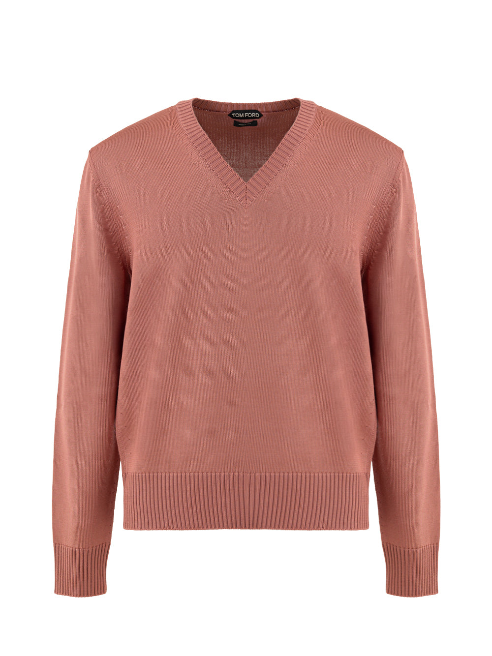Maglione V-Neck Tom Ford. In rosa antico, effetto lucido, morbido al tatto, lavorazione maglia al collo, polsini e in vita. Vestibilità slim.Composizione: 68% Viscosa, 29% Lana, 3% CashmereSKU Brand: KVL010YMV016F23 ER310SKU Interno: 25AP19