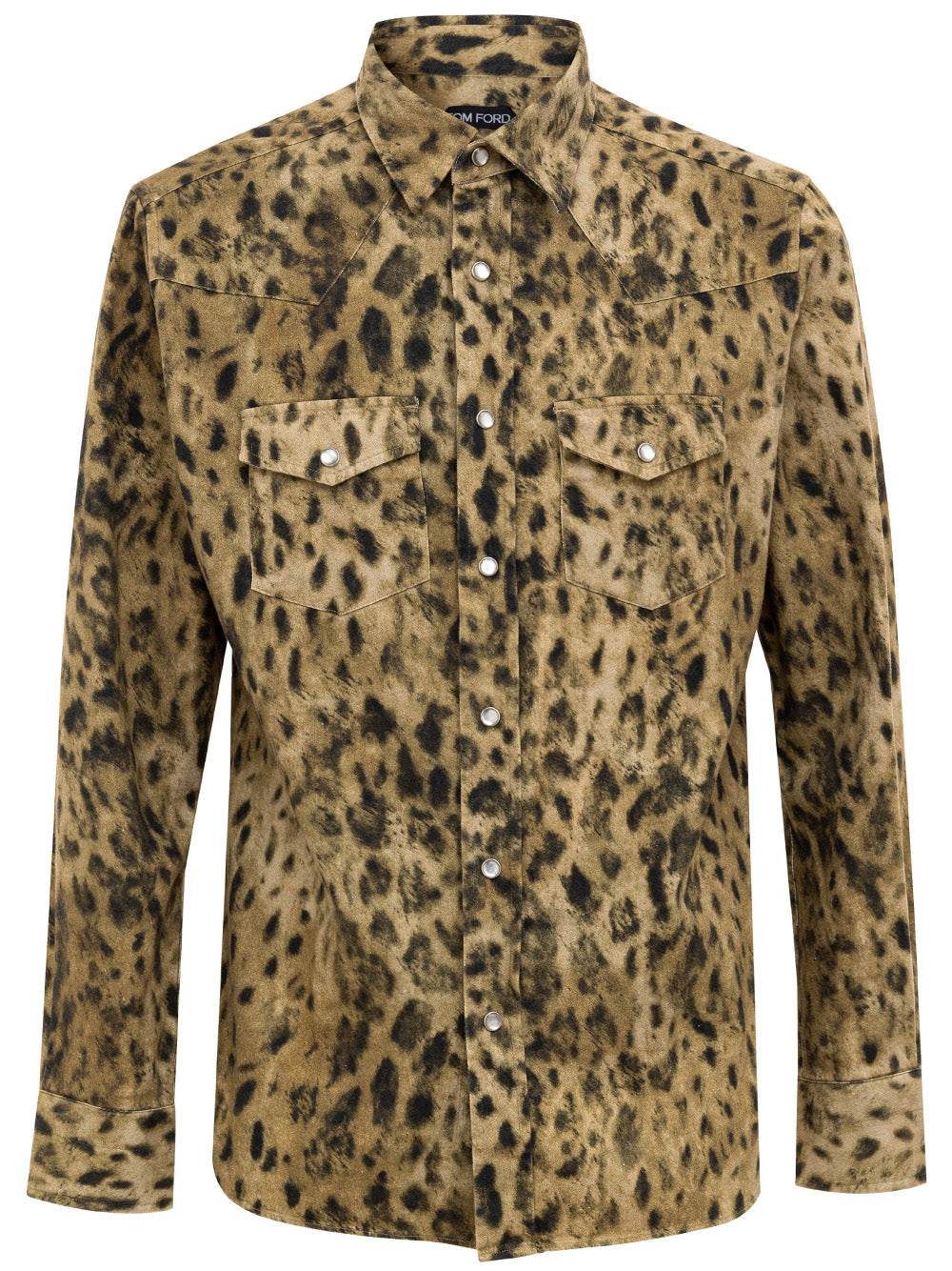 Tom Ford Camicia Slim Uomo Leopardata – Marrone/BeigeCamicia a maniche lunghe in cotone con stampa leopardata. Modello con chiusura frontale a bottoni a pressione, colletto classico e due tasche anteriori con pattina. Vestibilità slim. Composizione: 100% cotone.SKU interno: 25FEB18SKU BRAND: HDS001-FMC039S23-ZJBBR