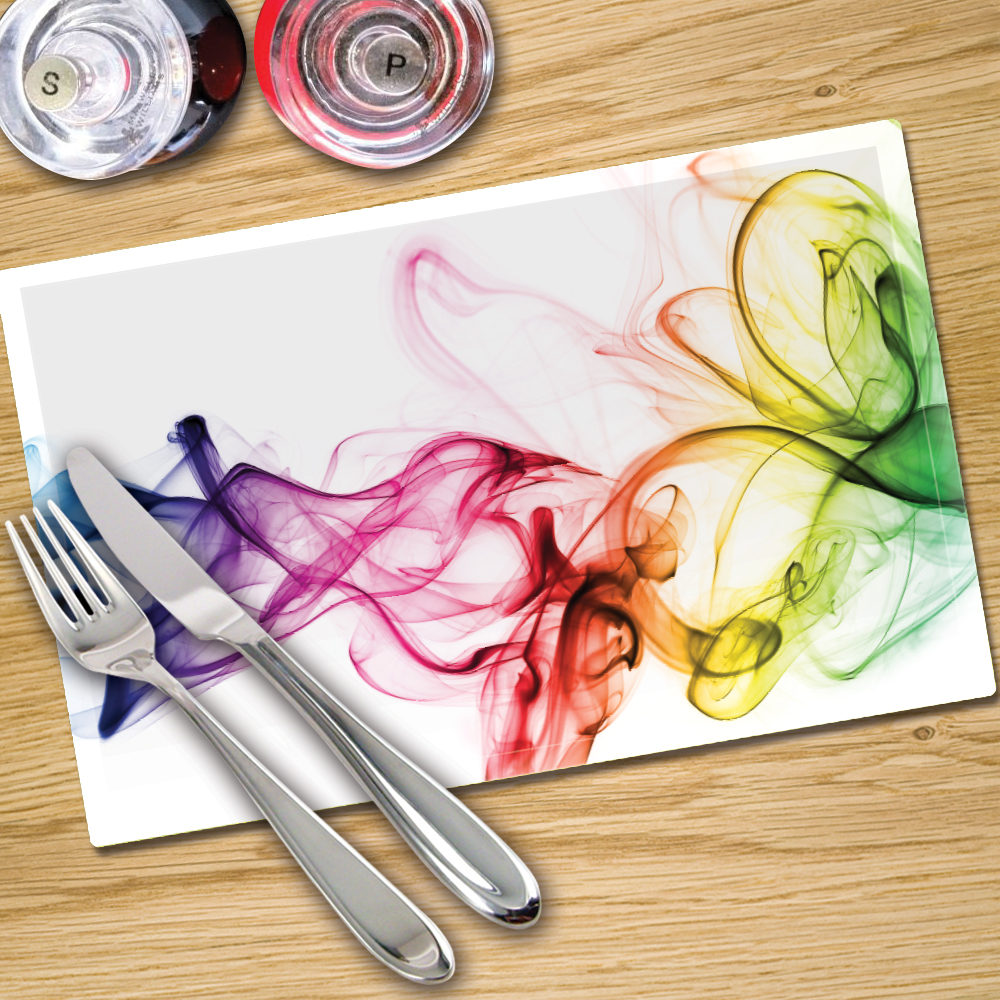 Glass Placemats Digital Printed x 4 in Rainbow Smoke on White – Made By Premier Range