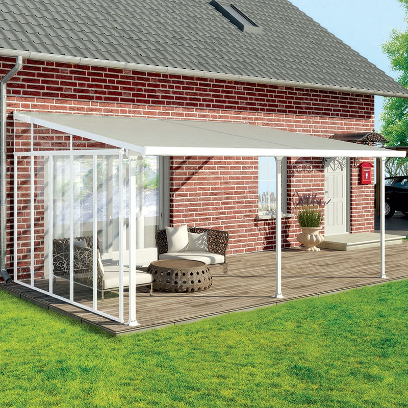 Improve shelter and reduce noise underneath your 4m-deep Palram Canopia patio cover, with the versatile 13ft Palram Canopia Patio Cover Side Wall Series 4 in White.You can install these patio cover side walls at either or both ends of your Palram Canopia patio cover. Made from a 3mm acrylic panel, they are robust, durable and completely UV-protected, so will maintain their crystal-clear appearance for many years to come.The acrylic side panel is supported by a white, powder-coated aluminium frame, which is built to last and impervious to rust.Supplied with a superb 10-year limited warranty, this patio cover side wall is easy to install and simple to clean, leaving you more time to relax in your garden.Free delivery is available to most UK postcodes.Superb 10-year limited warrantyCompatible with any 4m-deep Palram Canopia patio cover3mm crystal-clear acrylic panelUV protected to prevent discolourationWhite, powder-coated aluminium frameEasy to install and simple to cleanFree delivery to most UK postcodes