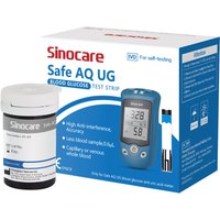 Demonstration video Of Safe AQ UG:. Sinocare blood glucose & Uric Acid Meter is everything you need for your daily health monitoring. You can use Safe AQ UG to conveniently and quickly detect your uric acid and blood glucose levels anytime.. Accurate and straightforward Testing: It helps you quickly get exact and fast results. A new modern design with a high-contrast LCD is for more accessible and discrete use.. Advanced Electrode Strips: It can avoid interference from blood oxygen variations and assure you of accurate test results each time.. Small and Easy to Use: You can use this device with one-handed priming. Fast lancing and personalized adjustable penetration depth settings are employed. A virtually pain-free lancing design can effectively helps minimize skin damage.. Tips: Regular Testing with Safe AQ UG is essential in diet, activities, and medication management for someone with hyperglycemia, hypoglycemia, gout, hypertension, obesity, and other cerebrovascular diseases.. Note:. Batteries are not included in the package because of aviation restrictions.. There're 2 device units optional–mmol/L & mg/dL; please choose according to the standard in your country.. The validity period of blood glucose test strip is 24 months. Please use it within 6 months after opening the bottle. The validity period of uric acid test strip is 18 months. Please use it within 3 months.. Specifications:. Blood Glucose Test. Test Method. FAD-GDH. Sample Type. Peripheral Capillary Whole Blood/Venous Whole Blood. Blood Volume. 0.6ul. Test Range. 1.1-33.3mmol/L. Test Time. 5s. Memory. 100 Sets. Validity Date. 24 Months. Uric Acid Test. Test Method. Oxidized Ferrocene Derivative. Sample Type. Peripheral Capillary Whole Blood/Venous Whole Blood. Blood Volume. 3ul. Test Time. 25s. Memory. 100 Sets. Validity Date. 18 Months. Instructions. Step1. Check the code to confirm the mode (Test uric acid, Insert the code card into the test system test port, then the screen will show the code.). Step2. Insert the test paper, and the instrument automatically boots.. Step3. Make sure that the code displayed on the screen matches the code on the test paper bottle.. Step4. Use a lancet pen to obtain fresh blood samples.. Step5. The instrument is loaded into the test paper to draw blood and wait for the test results.. Step6. After the countdown of the instrument, the test value would show.