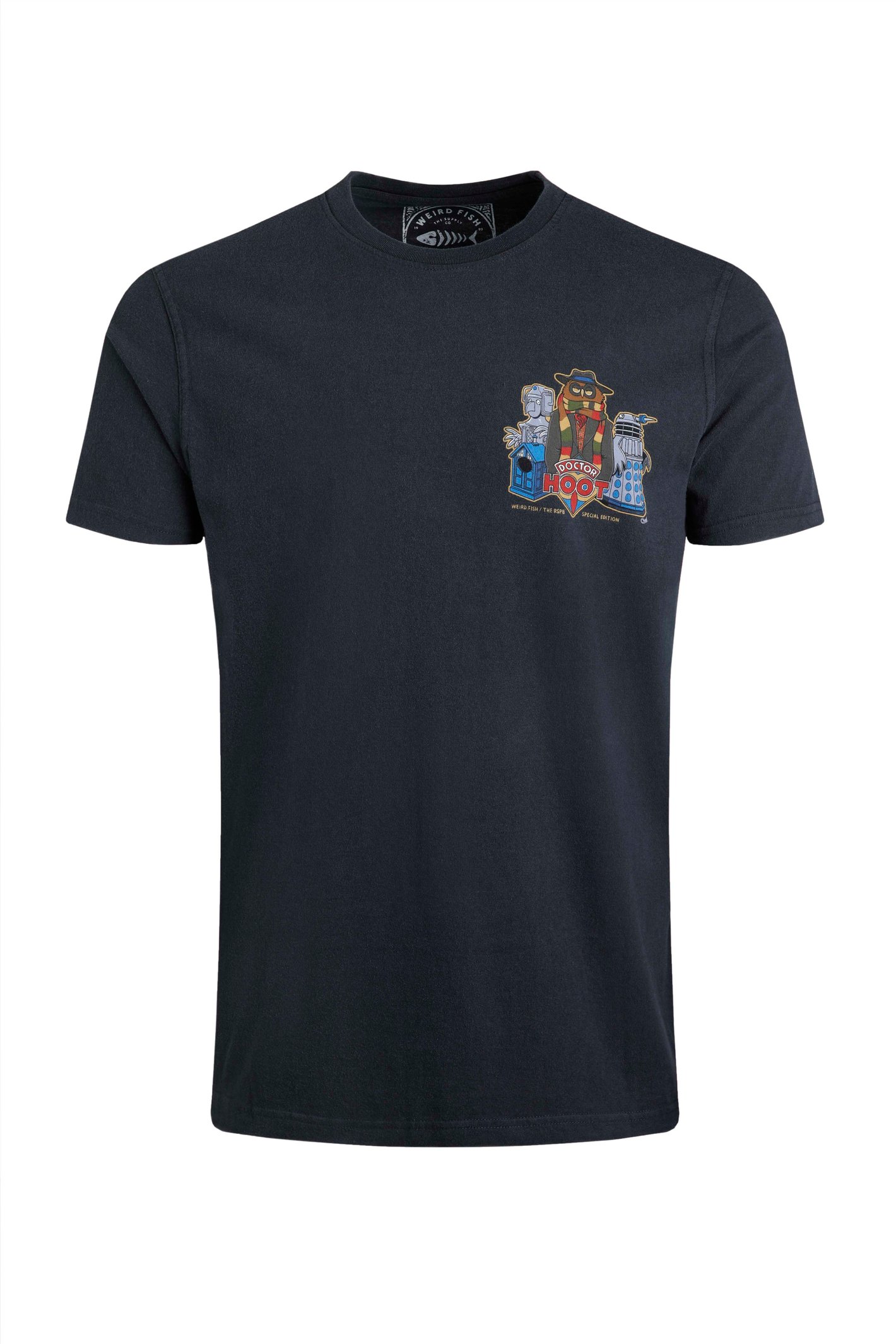 The perfect gift for Doctor Who fans our Doctor Hoot RSPB Charity Back Print Artist T-Shirt features a fun design and supports the incredible work of the RSPB what more could you want from a graphic tee?Relaxed fitCrew neckExclusive Weird Fish designSoft feelLarge back print and smaller chest printThe Weird Fish Artist T-Shirts are synonymous with the brand they have been with us since 1993 and are how we got our name. Always made from quality cotton and with a mix of front and back prints across the range. Every design features that famous Weird Fish tongue in cheek whit we know there is a design for everyone out there. Do you collect them? How many do you have? We would love to hear from you on social media.A minimum of £5 from each T-Shirt sale will be donated to the Royal Society for the Protection of Birds (registered charity: England and Wales no. 207076 Scotland no. SC037654)100% Cotton30° Machine Wash