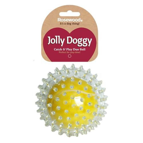Get 2 toys in 1 with this Rosewood Catch & Play Duo Tennis Ball Dog Toy. The perfect durable dog toy for games of fetch and bounce. This sturdy toy will give your dog hours of fun and keep you on your toes too.. 1 x Rosewood Catch & Play Ball. Duo spiky ball. Great for fetch