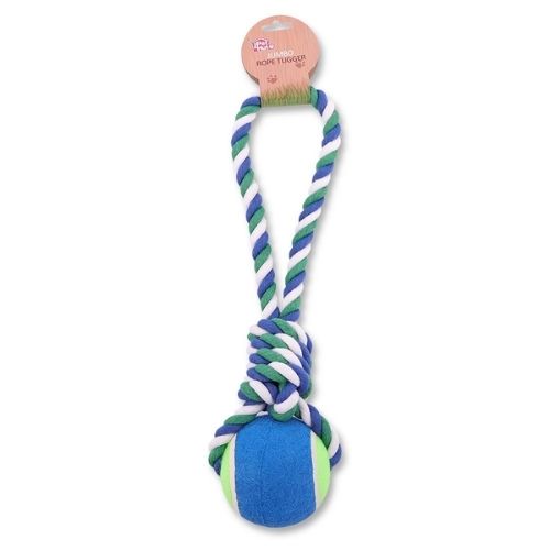 Surprise your pooch with this durable Jumbo Rope Tugger from The Pet Hut. This fun toy features a long rope loop, with a large tennis ball at the end. Perfect for an energetic and healthy who loves to run, chase and play tug of war! Choose between 3 bright colours of: green & blue, orange, or pink & red.. 1 x Jumbo Rope Colourful Tugger. Choice of three bright colourways. L x 44cm – width of tennis ball approx 10cm. Perfect for a dog who loves to chew and chase