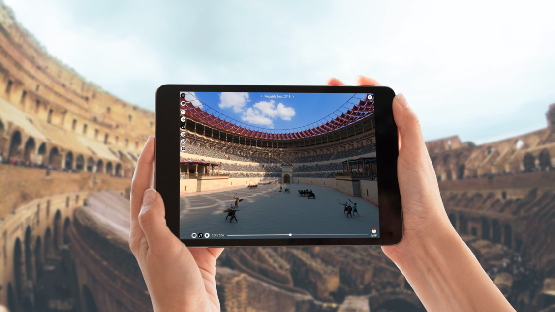 Rome has given us a lot to be thankful for: roads, plumbing, and architecture! Wander the streets of Ancient Rome, exploring the Colosseum, the Roman Forum, and the palaces of the ancient city. Your journey spans 18 immersive 360° digital reconstructions from the 100th century AD through to the present day. Embark on your own self-guided tour and explore Rome’s ancient sites in 360°. Experience and compare today’s Roman ruins and monuments with their glory days. Your journey takes you from the magnificent Colossus to a ringside seat in the Colosseum, witnessing an awesome naval battle as if you were an ancient Roman citizen! Stand next to The Arch of Constantine, chill out on the steps of the Circus Maximus, and marvel at the Temple of Julius Caesar and Trajan’s Forum. Bring your smartphone, comfortable walking shoes, water, sunscreen, and a hat! Walking around Ancient Rome is great exercise—it’s no wonder the Romans were so fit!