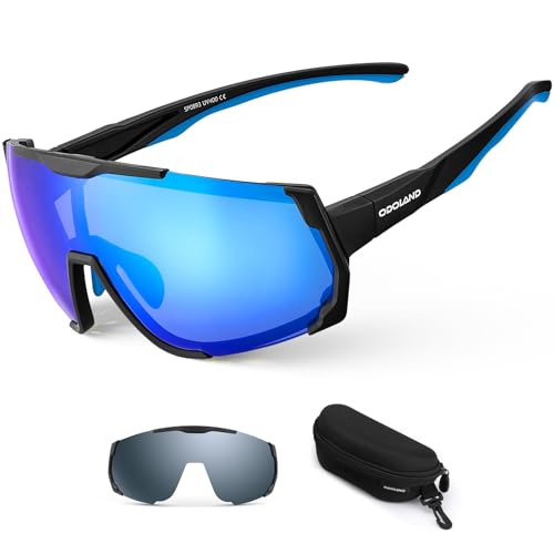 Odoland Cycling Sunglasses with Replaceable Magnetic Lenses for Men Women – Lightweight Polarized UV400 Sport Sunglasses for Driving Cycling Motorcycle and Outdoor Sport Blue