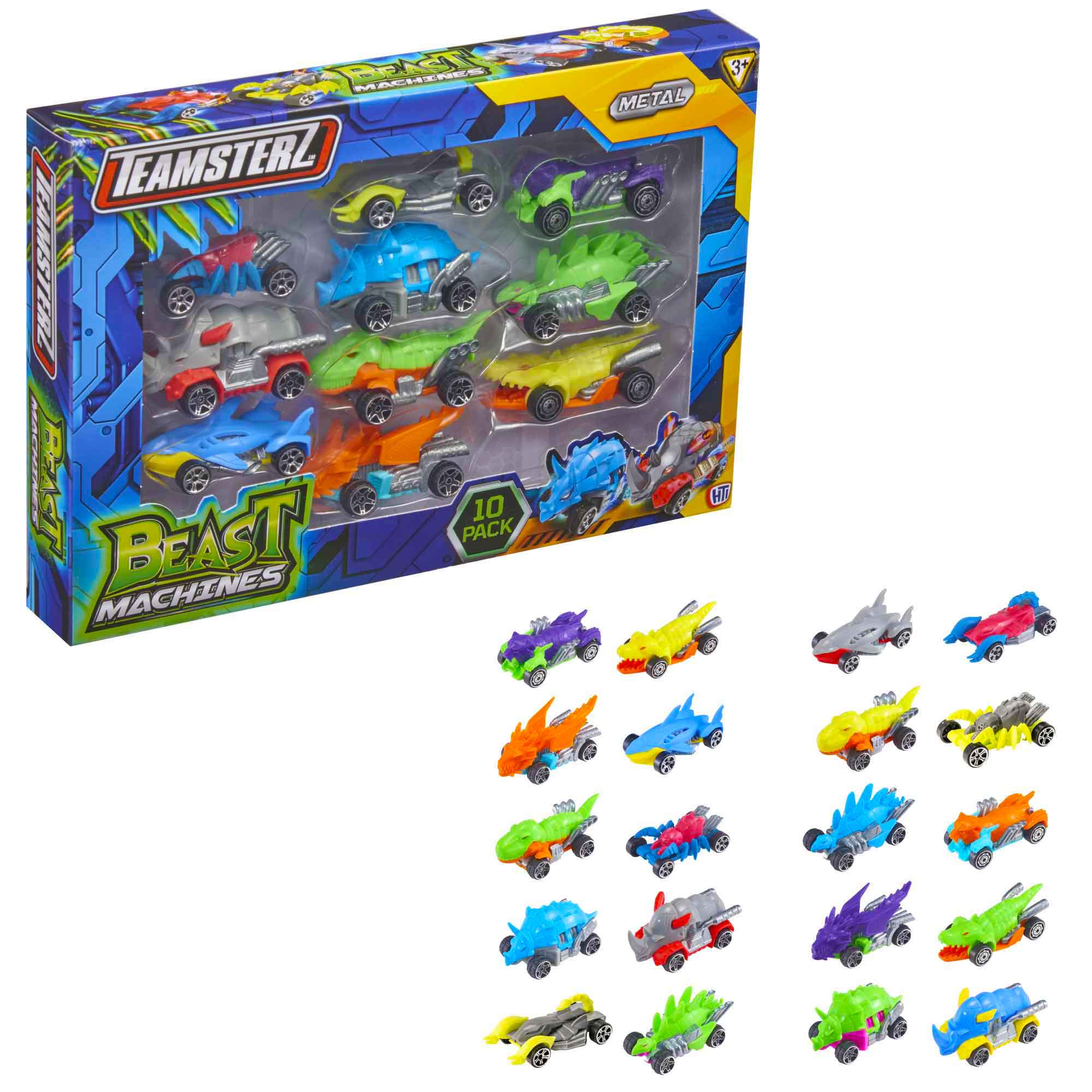 About this item. Is your child Dinosaur mad, then this play set is perfect for your little one. Whether racing along with friends, setting up your very own Jurassic world or taking your favourite car wherever you go, you have plenty to choose from with this Dino car multipack. With so many cars too chose from your little one can race around, making this the perfect gift for any enthusiastic little driver, offering hours of imaginative fun!Similar to Hot Wheels, this Beast Machine Playset includes 10x Die-cast cars with all being a different dinosaur featuring Sharks, T-Rex’s, Crocodiles, Dragons and a variety of different Dinosaurs. With this play set your little one can be encouraged to develop their social skills, imagination and fine motor skills by playing with friends or letting their imagination go wild. Our range of Monster Vehicle toys are fantastic toys for children aged 3 and over to learn through playing.